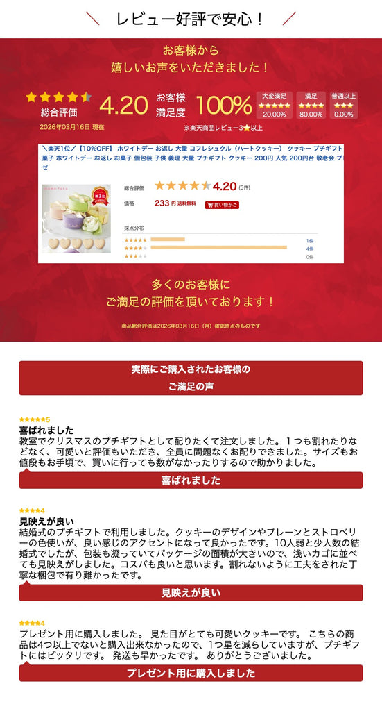 箱の中には、サクサク食感のハートクッキーをセット。甘すぎない雰囲気なので、バレンタインのプチギフトにも取り入れやすく、義理チョコ代わりのプレゼントとしても気負わず渡せます。