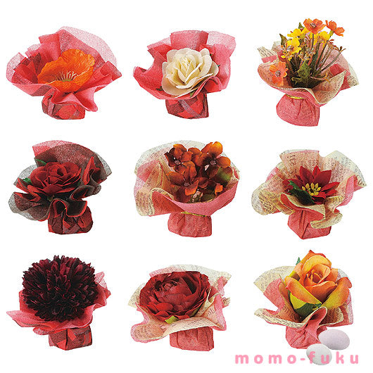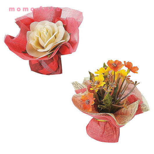 9種類のアーティフィシャルフラワー(造花)を使ったプチギフトは、リアルな生花の美しさを再現。各お花の中にはドラジェがひとつずつ入っており、大人の結婚式にぴったりの上品なアイテムです。ボルドーカラーの落ち着いたデザインが、おしゃれなウェディングシーンを演出します。