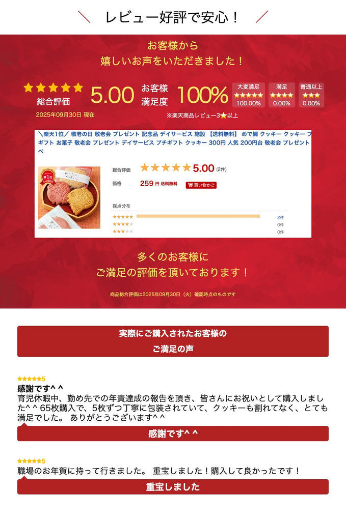 育児休暇中、勤め先での年責達成の報告を頂き、皆さんにお祝いとして購入しました^ ^ 65枚購入で、5枚ずつ丁寧に包装されていて、クッキーも割れてなく、とても満足でした。 ありがとうございます^ ^
