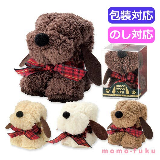 【プチギフト 400円】ふわふわワンコ型 ハンカチタオル