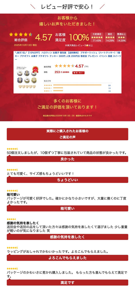 50個注文しましたが、10個ずつ丁寧に包装されていて商品の状態が良かったです。