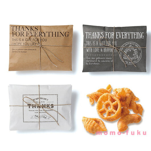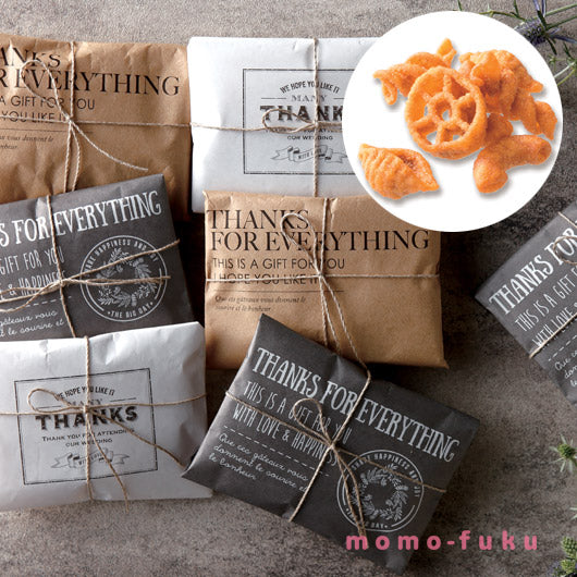 アメリカンテイストのラフさが漂うプチギフトは、手にした瞬間に微笑みが生まれる面白い雰囲気が魅力です。チェダーチーズのおつまみはお酒にも合い、ギフトやお礼のプレゼントとして嬉しい気持ちを自然に届けてくれます。ブラウン・ブラック・ホワイトの3色パッケージには感謝の言葉が添えられ、異動や退職、卒業などの場面にも寄り添う“ちょっとした”お菓子として最適。手に取りやすい500円や300円の感覚で贈れ、大人の感謝にもよく合います。