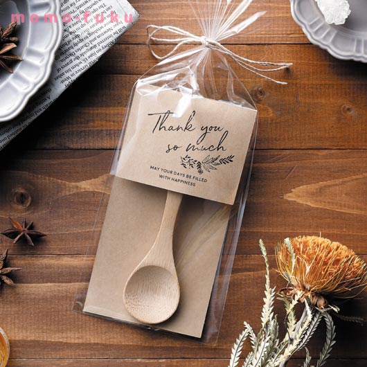 どんなシーンにも合わせることができ、好みを選ばない竹で作られたティースプーンです。エコで洗練されたデザインが特徴で、毎日のティータイムにぴったりです。パッケージには「Thank you so much」という感謝のメッセージが刻まれており、心温まるお礼の気持ちを伝えるのに最適です。