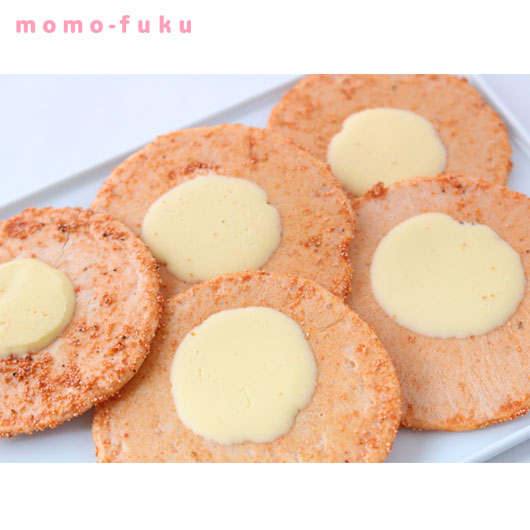 ●原材料: 馬鈴薯澱粉(国内製造)、植物油脂、えび、乳等を主要原料とする食品、砂糖、乾燥たらこ、鶏卵、明太子パウダー、チーズ粉末、食塩、魚(片口いわし、あじ)、粉末醤油、ポークエキス粉末、餅米(国産)、粉末味噌、唐辛子、人参ジュース、豚脂、イカエキス、カキエキス、昆布エキス/調味料(アミノ酸等)、糊料(プルラン)、着色料(クチナシ、カロチン、紅麹、パプリカ色素)、香辛料抽出物、香料、乳化剤、(一部にえび・小麦・卵・乳成分・いか・大豆・豚肉・魚醤(魚介類)を含む)