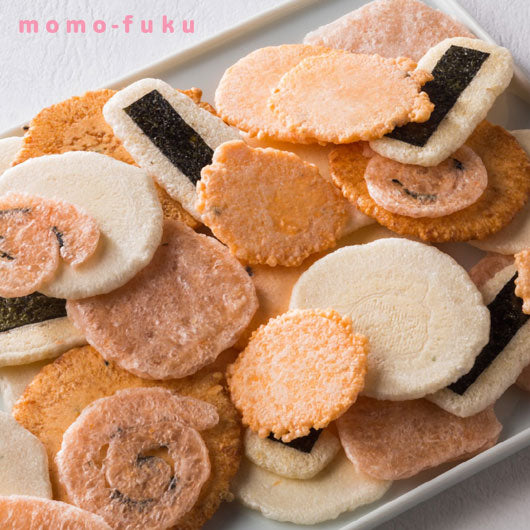 さまざまな材料と製法で焼き上げた色とりどりのえびせんべいをミックスしました。