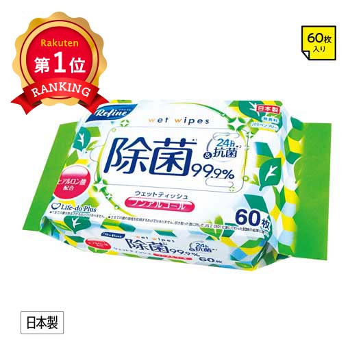 リファイン除菌ウェットティッシュ60枚入 ノンアルコール【240個単位】
