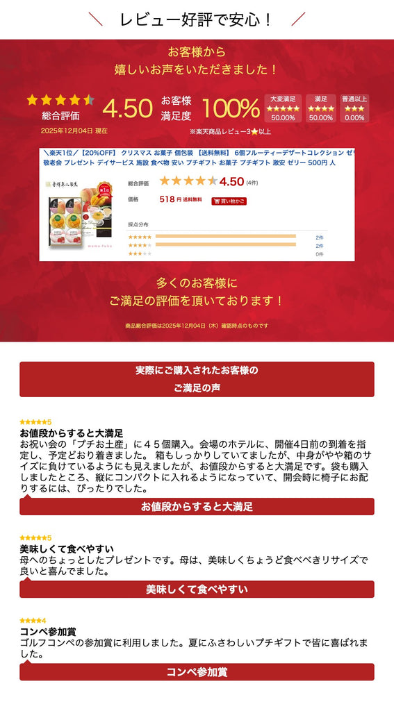 やわらかな甘さのプリンやムースをひとつずつ味わっていると、小さな幸せがそっと広がるような詰め合わせです。食後に家族で分け合う時間にもぴったりで、気軽に渡せるギフトとしても使いやすいサイズ感。季節のご挨拶や、ちょっとしたお礼を伝えたいときのプレゼントに選ばれる理由は、この上品な味わいにあります。負担にならない価格帯なのに、開けた瞬間に嬉しい気持ちが届くのも魅力。お正月の集まりやご親戚への贈り物、子どもも楽しめる軽やかなお菓子としても喜ばれ、600円台とは思えない満足感のあるセットです。手土産やプチギフトにもおすすめのおしゃれな一品です。