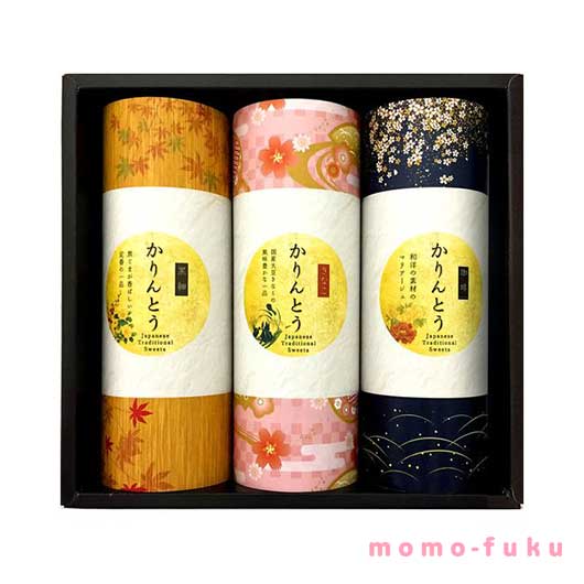 国産きなこをまぶし、甘さを抑え少し塩味に仕上げた懐かしい味のきなこかりんとうと、昔ながらの定番の味クセになる美味しさの風味豊かな黒かりんとう、珈琲の香ばしさが甘みを引き立ててくれる大人味の珈琲かりんとうの詰め合わせです。