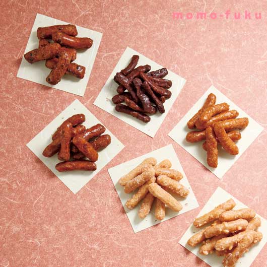 様々なフレーバーを楽しめるかりんとうの詰合せです。 黒ごまかりんとう 香ばしい黒ごまで風味豊かに仕上げました。 チョコかりんとう チョコレートを生地にたっぷりと練り込み、カリッとかる〜い食感に仕上げました。 キャラメルかりんとう キャラメルを生地にたっぷりとかけ、しっとりと仕上げました。 黒糖かりんとう 風味豊かなハチミツ入りで、サクサクッとした食感に仕上げました。 牛乳かりんとう 牛乳を生地に練り込み、サクッと軽い食感に仕上げました。 ピーナッツかりんとう ピーナッツの香ばしさと甘みを調和させ、味わい深
