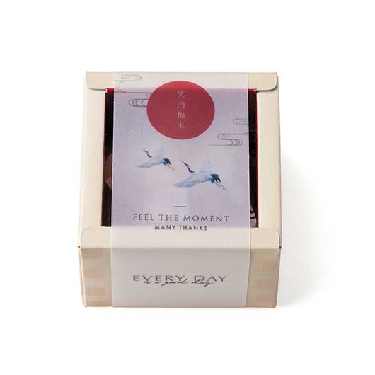 「幸せが積み重なり福が“増す”ように 幸福が“増し”て、“益々”めでたくなる」という願いが込められた、心温まるプチギフトです。お祝いの場にふさわしい和風デザインで、感謝の気持ちをしっかり伝えることができます。特に結婚式やイベントで人気があり、感謝の言葉が刻まれたデザインは、贈る側にも受け取る側にも喜ばれる一品です。