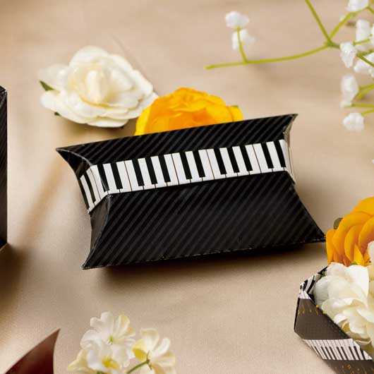 音符や鍵盤の柄が入った折り紙。イベントの待ち時間や、お父さんお母さんが打合せ中のお子さまもこれでウキウキ楽しく遊べます