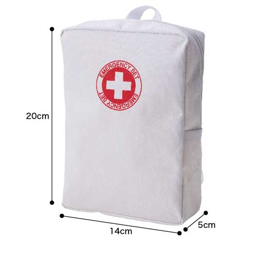 ●材質:[ポーチ]ポリエステル [マニュアルカード]紙 [LEDライト]ABS [アルミシート]アルミ蒸着PETフィルム [不織布三角巾]ポリエステル [圧縮不織布タオル]ポリエステル [マスク]PP [軍手]綿 [カラビナ]アルミ [笛]PS [ジッパーバッグ]PE [レインコート]PE
