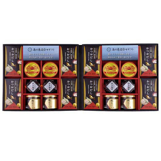 ●セット内容:かつおだし(4g×8)×8、のり佃煮瓶詰(80g)・紅ずわいがにほぐし身(55g)・鮭ほぐし(50g)×各4