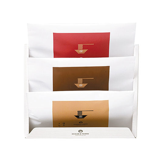 ●内容:函館らーめん半生麺(ちぢれ麺)100g×1、札幌らーめん半生麺(中太麺)100g×1、博多らーめん半生麺(細麺)100g×1、函館塩らーめんつゆ×1、札幌みそらーめんつゆ×1、博多とんこつらーめんつゆ×1