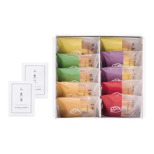 ●内容:黄粉バーム×2、黒糖バーム×2、シナモンバーム×2、さつま芋バーム×2、和栗バーム×2、黒蜜10g×2