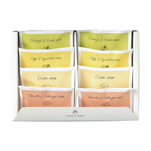 ●内容:ザク切りキャベツとトマトのスープ×2、あめ色玉ねぎのスープ×2、野菜とたまごのスープ×2、しめじとえのきの和風スープ×2