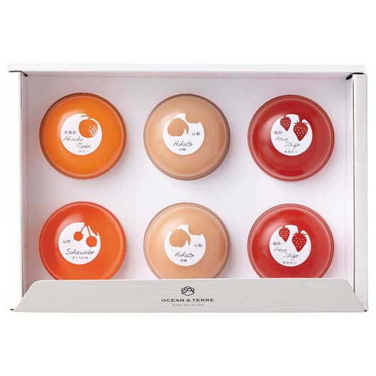 ●内容:北海道 赤肉メロンゼリー72g×1、山形県 さくらんぼゼリー72g×1、山梨県 白桃ゼリー72g×2、福岡県 あまおう苺ゼリー72g×2