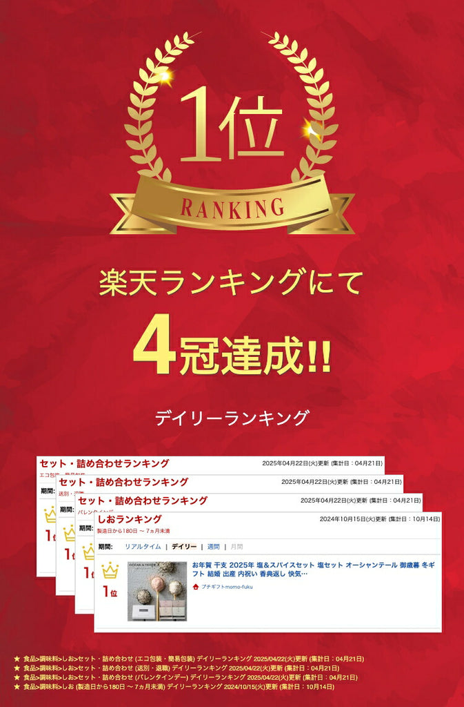 ●内容:紅塩15g×1、レモン塩15g×1、オールスパイス10g×1、バジルスパイス10g×1