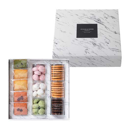 ●内容:フィナンシェ 宇治抹茶×1、フィナンシェ プレーン×2、フィナンシェ ベリー×2、ブールド・ネージュ ストロベリー(10個)×1、ブールド・ネージュ ホワイト(10個)×1、ブールド・ネージュ 宇治抹茶(10個)×1、ケベック(7枚)×1、ディアマン(7枚)×1、ショコラ(7枚)×1