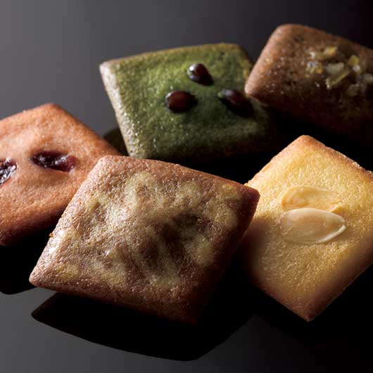 アーモンド香るベーシックなフィナンシェプレーン。ラズベリー・ストロベリー・クランベリーの3種を楽しめるベリー。北海道産かのこ豆がアクセントの宇治抹茶。カフェでの『至福のひととき』をイメージして焼き上げました。
