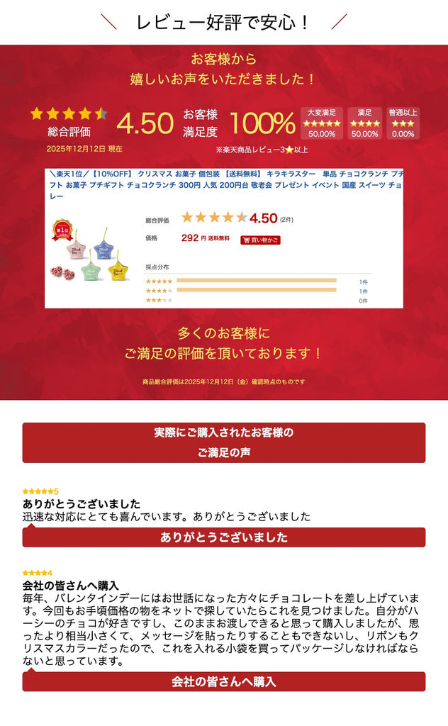 それぞれのパッケージが五つの鮮やかな色でデザインされており、まるで星々が夜空に浮かんでいるような美しさを演出しています。「キラキラスター」は、ただのお菓子ではなく、インテリアやデコレーションとしても活用できるオブジェのような存在感があります。クリスマスのツリーに飾れば素敵なオブジェになります。中には、サクサクのハートクランチチョコが詰められており、口に入れた瞬間に広がる甘さと食感が楽しめるプチギフトです。