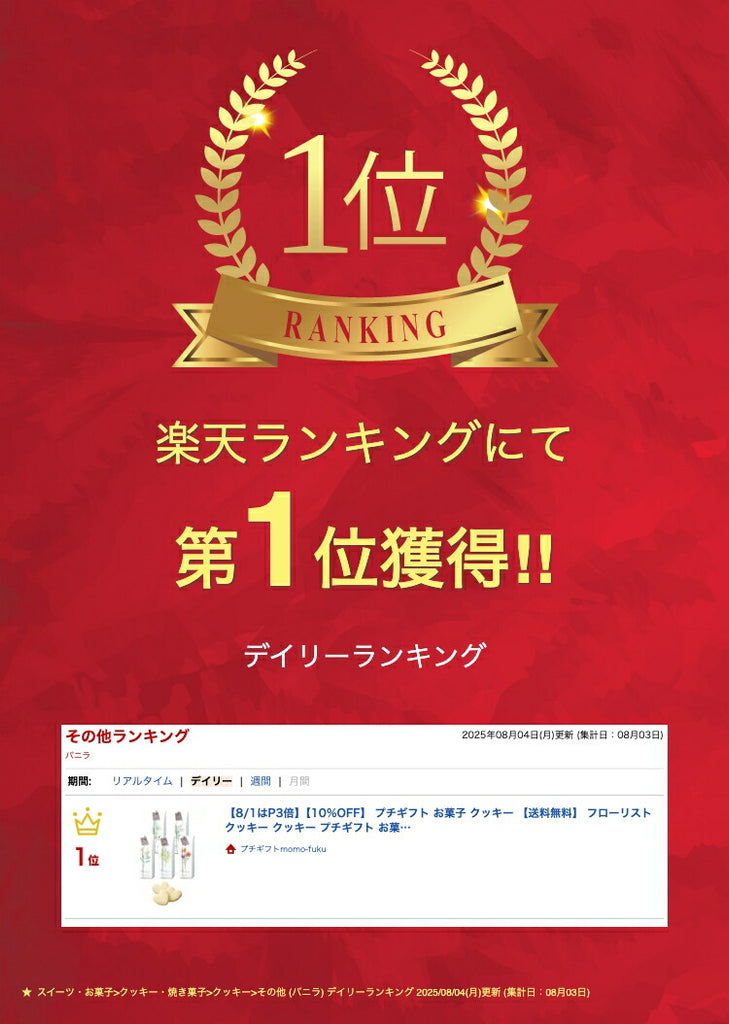 「フローリストクッキー」は、お菓子好きな方やシンプルで上品な贈り物をお探しの方にぴったりのプチギフトです。贈るシーンを選ばず、心温まるひとときを提供します。