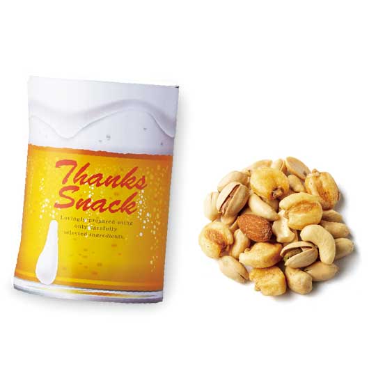 サンクスナッツは、ビールの絵が描かれたユニークなパッケージに入った、ミックスナッツのプチギフトです。結婚式の引き出物やお祝いの場にぴったりな一品で、受け取った人を笑顔にします。ナッツの香ばしさと食感がビールと相性抜群で、ちょっとした面白いサプライズを演出。お酒好きの方への贈り物としても最適です。