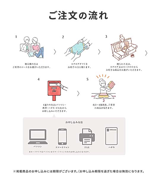 カタログタイプ:カタログで商品をお選びいただき、専用ハガキでご注文