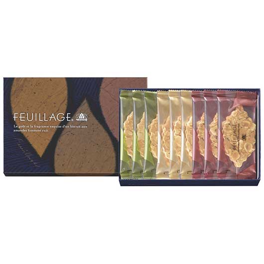 モロゾフ自慢の焼き菓子。スライスナッツをたっぷりとしきつめパリッと香ばしく焼き上げた木の葉型のクッキー。 絶妙なバランスで、チョコレートをサンドしました。