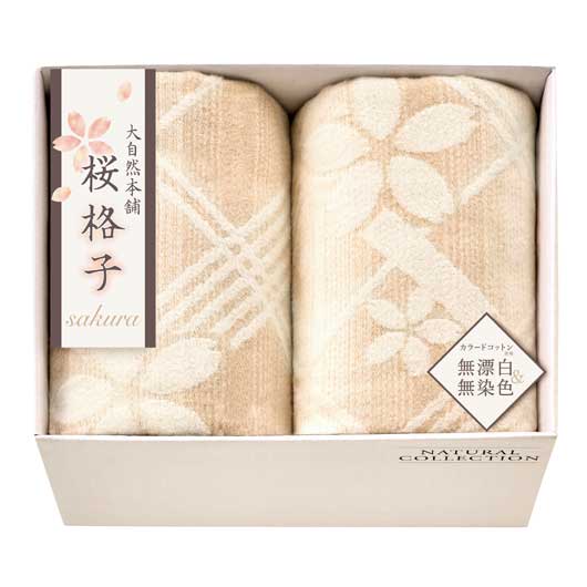 ●商品名:大自然本舗~桜格子~ 肌にやさしい自然色の綿毛布2P  SBN85200