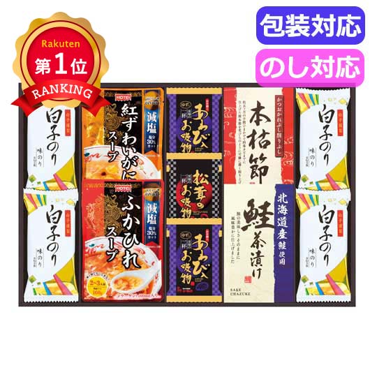 ●スープ(ふかひれ・紅ずわいがに)各160g・あわび入お吸い物×2・松茸のお吸い物・北海道産鮭茶漬け(4g×2袋)・本枯れ節削り節(2g×2袋)・白子のり(8切5枚)×4  【卵・乳成分・小麦・えび・かに】