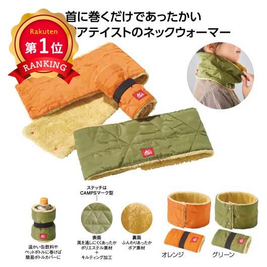 ボタンタイプの使いやすいネックウォーマー。 ボアとキルティングで寒さをシャットアウト。 収納バンドを使えばペットボトルの保温カバーに。