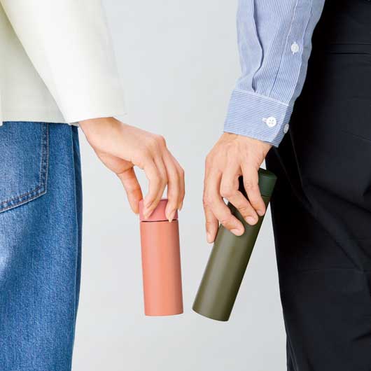 フタの面取りエッジがおしゃれなポイント。 ちょっとしたお出かけやお子さま用に便利な容量。 ご年配の方の薬用のお水の持ち運びにも最適。