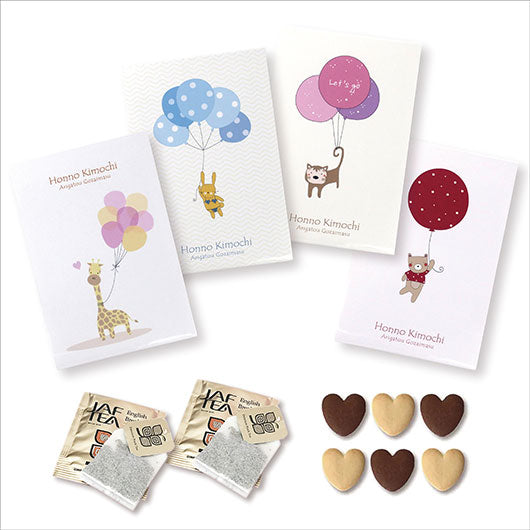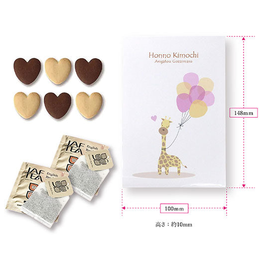 ●ハート型クッキー 6枚入り(バニラ3枚・ココア3枚)、紅茶(2包入り) ×1個