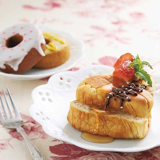 ハートデニッシュ(メイプル・チョコ)×各1、ワッフル(プレーン・チョコ)×各1