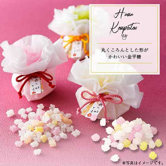 金平糖は優しい色合いでおひなさま、敬老などのお祝いごとにもピッタリです。