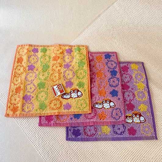 縁起の良いふくろうの刺?が入ったかわいいハンドタオルです。