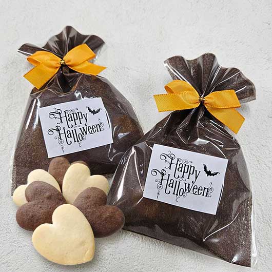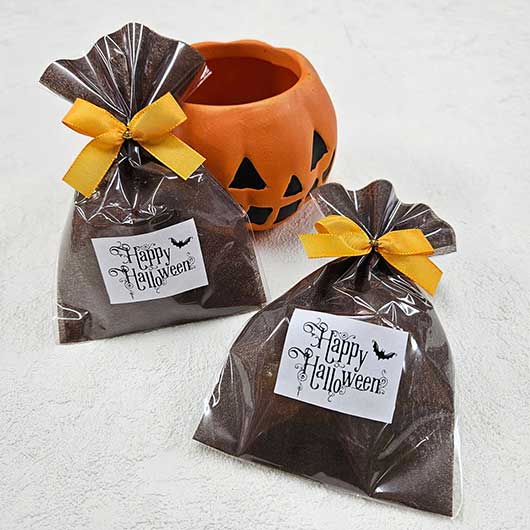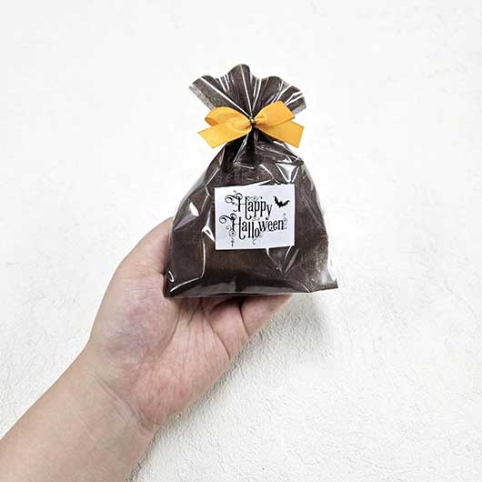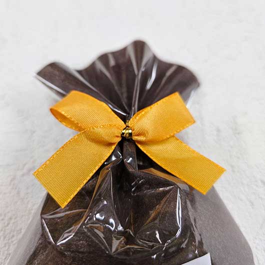 ブラウンのパッケージにオレンジのリボンが、クラシカルな雰囲気のプチギフトです。