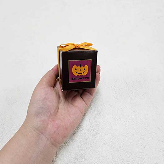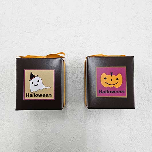 ブラウンのパッケージにおばけやかぼちゃのシールがかわいいプチギフトです。