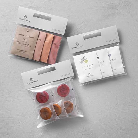 オーシャンテール商品をカジュアルなバッグに入れて…透明感ある袋に入ったギフトは、手土産にも最適なサイズです。