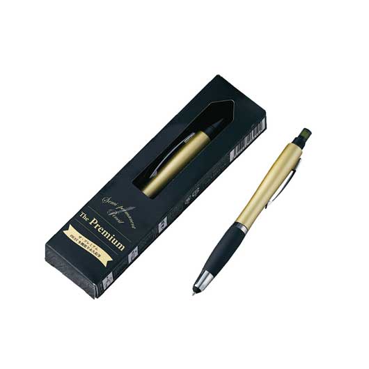 4つの機能を備えた多機能ペン。 半永久的に使用できる鉛筆が魅力的です。 名入れが映える中身が見えるパッケージ。