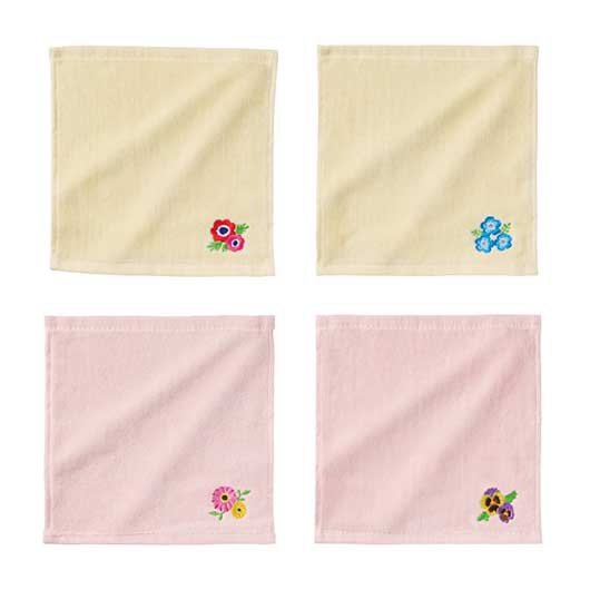 日頃の感謝をお花の刺繍にこめて… 大切な方にプレゼントしてみませんか? アネモネ・ネモフィラ・ガーベラ・パンジーをワンポイントで刺繍した、 かわいいハンドタオル、4種取り混ぜとなります。 手触りにもこだわった生地は約20×20cmで、使いやすく携帯しやすいサイズです。 配布しやすい・受け取っていただきやすいサイズでもあります。 長3封筒に入れることができますので、 DM開封率アップ施策にもご利用いただけます。 母の日、父の日、敬老感謝の日のプレゼント、 美容系ビジネスでの活用等、おススメいたします。 ワンポイントの刺繍がかわいいハンドタオル、他にもいろいろございますので、是非、あわせてご検討ください。