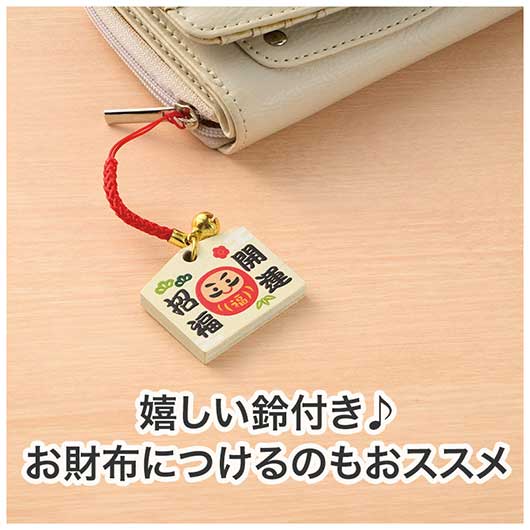 縁起の良い「だるまさん」をデザインした、絵馬型のキーホルダーはいかがでしょうか? 鈴付きで、お財布・スマホケース・バッグ等につければ運気があがるかも!? 台紙背面の折り返し部分に「おみくじ」がついており、 イベントで配布すれば、盛り上がること間違いなし! 年始のご挨拶品として、新春セール等の景品としても、ご活用ください。 長3封筒での郵送も可能です。
