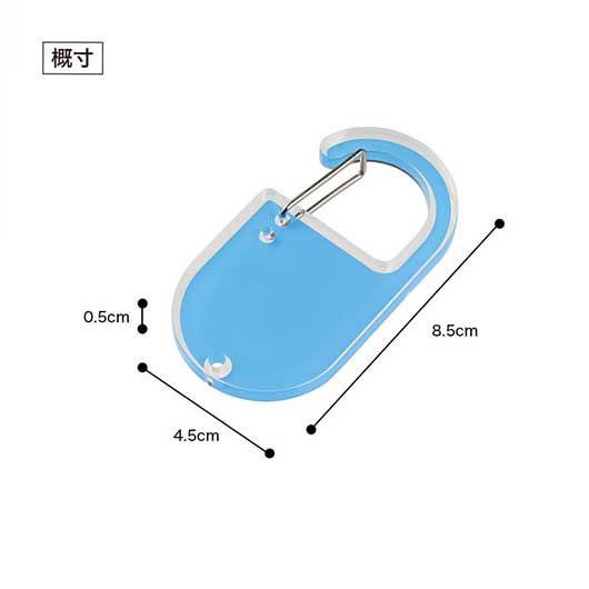 ファッションアイテムとして人気の、アクリル製カラビナです。 本体下部に空いた穴に、キーホルダーや小物をぶら下げてご利用ください。 カラビナ部分が大きく、ベルトループやかばんの持ち手等に、どなたでもカンタンに取り付けられます。 「推し活」アイテムとしての使い方もおススメです♪ 推しキャラのぬいぐるみやアクキー(アクリルキーホルダー)を「連れ歩く」のにご活用いただけます。 「推し」の色にあわせられる、 レッド・ブルー・イエロー・ピンク・パープルの5色展開! (本商品は「ブルー」です) 企業名・ショップロゴ・イメージキャラクター等の名入れも可能! PR効果抜群のオリジナルグッズが簡単に完成し、物販品としてもご利用いただけます。 長3封筒での郵送も可能なので、DM開封率アップ施策にもご活用ください。 他の「推し活」関連グッズも、是非あわせてご検討ください。