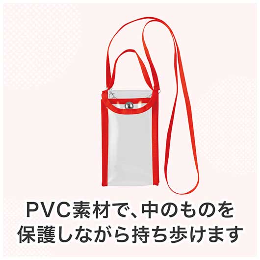 ●カラモ 2wayクリアスマホショルダーバッグ レッド ×1個入り