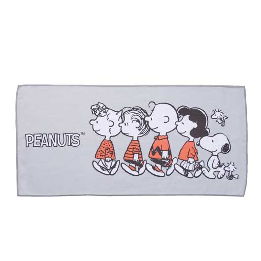 並んだキャラクターがかわいくオシャレ。 差し色がおしゃれなシンプルカラーで、 使いやすいサイズ感のデイリータオルです。