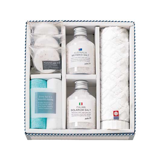 ●バスソルト(イタリアン)海塩180g・バスソルト(オーストラリア)海塩175g・ソルト・フィズ40g×3・マイクロファイバークロス250×250mm×2・今治ウォッシュタオル280×300mm
