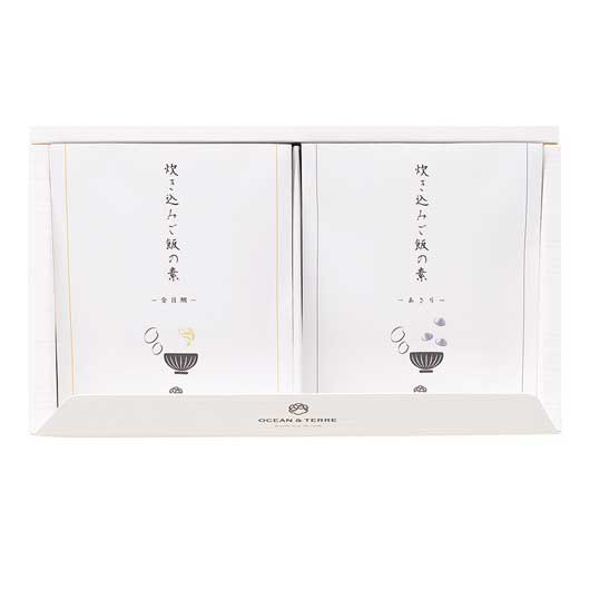 ●内容:炊き込みご飯の素(2合用)38g×2、金目鯛1切×1、あさり30g×1、三つ葉0.2g×2、白煎りごま1g×2