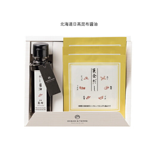 ●内容:北海道日高昆布醤油100ml×1、黄金だしパック8g×3