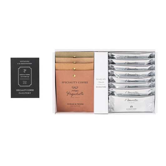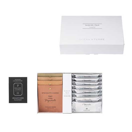 ●内容:ドリップ珈琲(ミャンマー スターマウンテン、ブラジル ショコラ、コスタリカ ハニー、エチオピア イルガチェフェ)4種(各8g×1)、フロランタン12g×8、パスポート付き(スペシャルティコーヒー説明書)